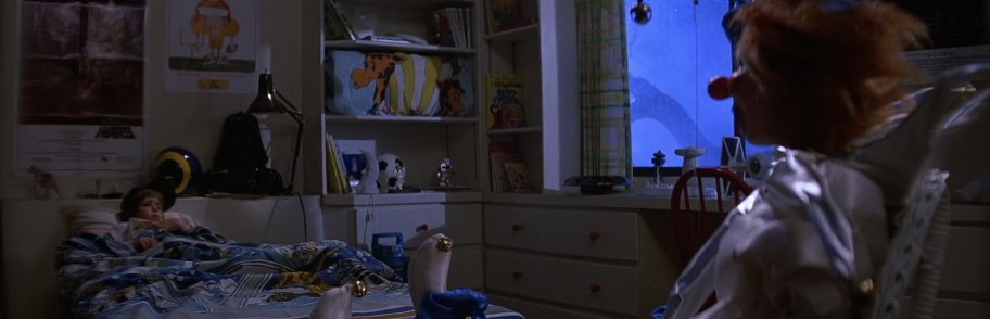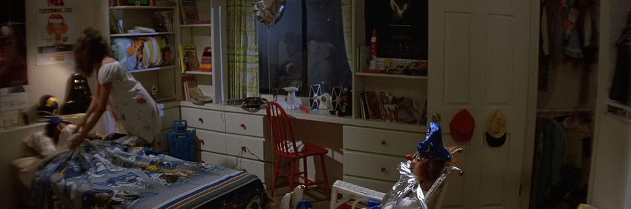 The spatial arrangements of childhood in Poltergeist carry their own powerful ideological charge. The Freeling children sleep in their own rooms, separated from their parents not just by doors but by meaningful physical distance. The teenage daughter Dana has a room that functions as a private apartment — decorated according to her own tastes, hung with the posters of her own choosing, and providing a space in which she can lead a life substantially independent of family supervision.