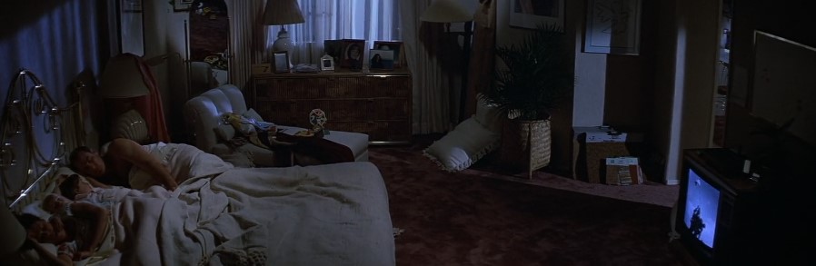 Consider the television sets. The Freeling home does not have a television. It has televisions — plural, positioned in multiple rooms including the master bedroom. Television ownership was still aspirational in many parts of the world when Poltergeist was released. The idea of having a personal set in the bedroom, available for private viewing after the children had gone to sleep, was the kind of luxury that signaled not extreme wealth but something perhaps more unsettling: a surplus of consumer goods so complete that the living room television was simply insufficient for all the television-watching that needed to happen. The remote control, meanwhile — already standard in American households — was still a novelty or an absurdity in much of the world.